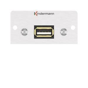 KIND Konnect 50 alu - USB 2.0 7444000522 USB-A Blende 1/2 50x50 mit Kabelpeitsche Netzw.Telekomm