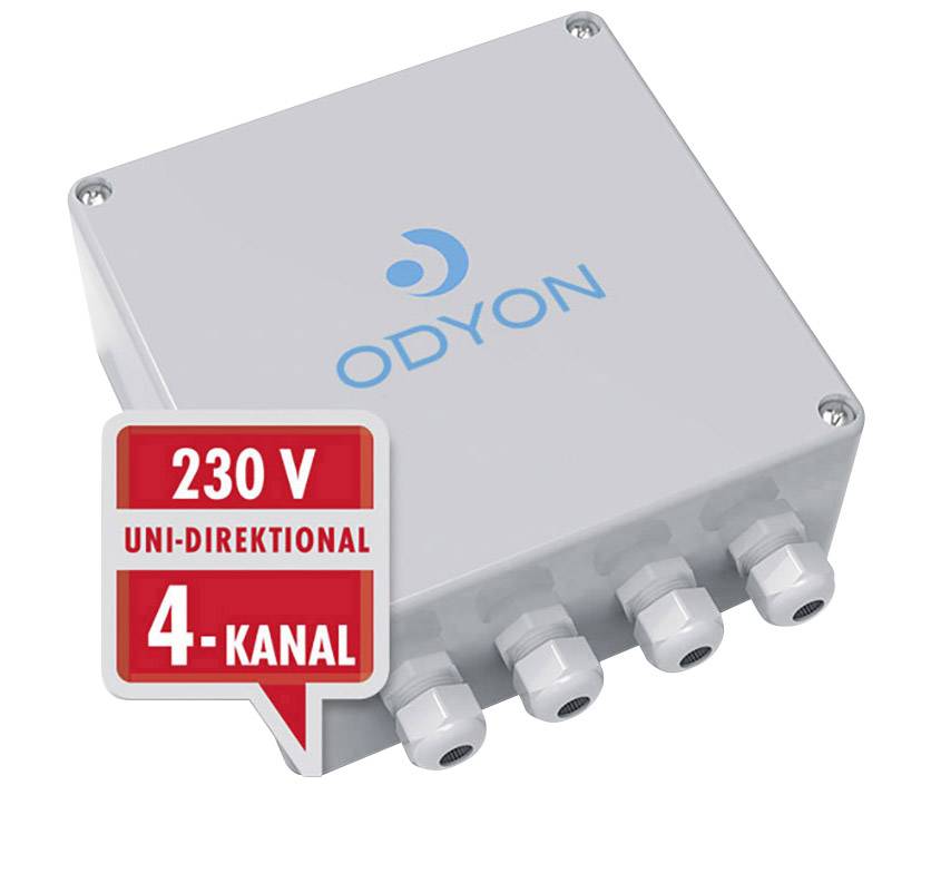 Fernsteuerung von verschiedenen Funktionen und Anwendungen · Empfänger in besonders robuster Ausführung · Einfache Programmierung – Mehrfachbelegung der Schaltkanäle möglich · Anschlussmöglichkeit für diverse externe Antennen · Potentialfreie Wechslerkontakte für Tast-, Schalt- oder Togglebetrieb · Kompatibel mit allen unidirektionalen ODYON wireless Sendern.