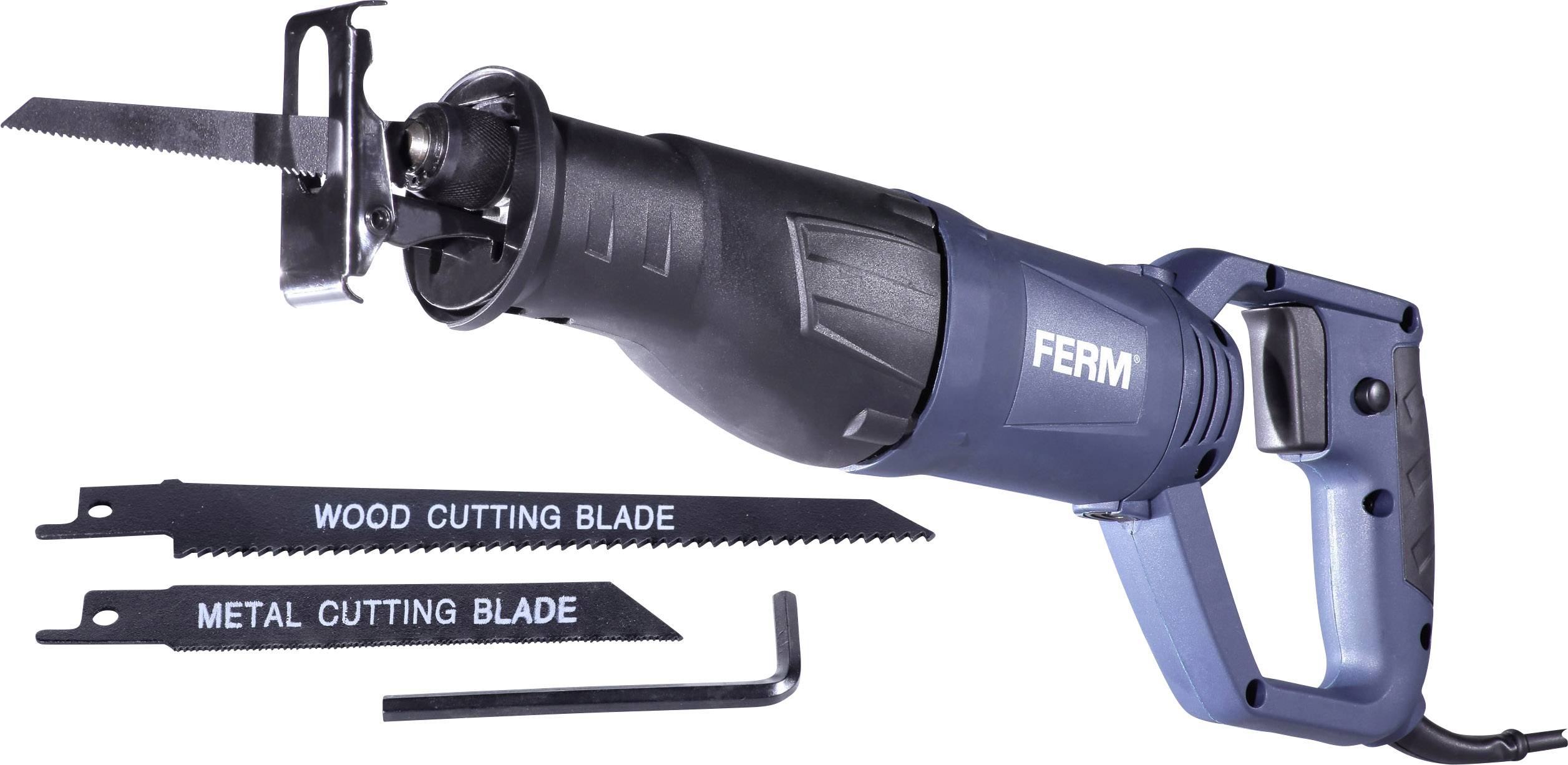 Dank seines schlanken und ergonomischen Designs ist die RSM1019 komfortabel zu bedienen. Der D-Griff ist mit einer Gummigriffzone ausgestattet, die Ihnen zusätzlichen Halt gibt. Zusammen mit einem Stromkabel von 3 Metern haben Sie genügend Bewegungsfreiheit während der Arbeit. Die FERM RSM1019 wird komplett mit 2 verschiedenen Sägeblättern (geeignet für Holz und Metall) und einem Innensechskantschlüssel geliefert.
