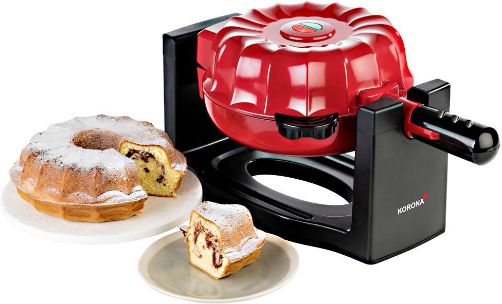 Leckere gleichmäßige Kuchen in wenigen Minuten duch die 180° Dreheinrichtung die für eine gute Teigverteilung sorgt.
