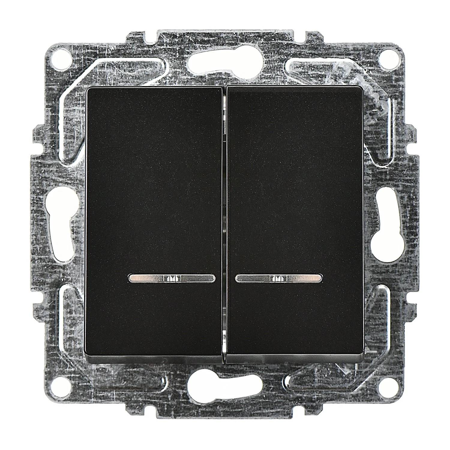 Günsan Eqona Serienschalter mit Beleuchtung Einsatz ohne Rahmen mit Wippen schwarz, VDE, CE