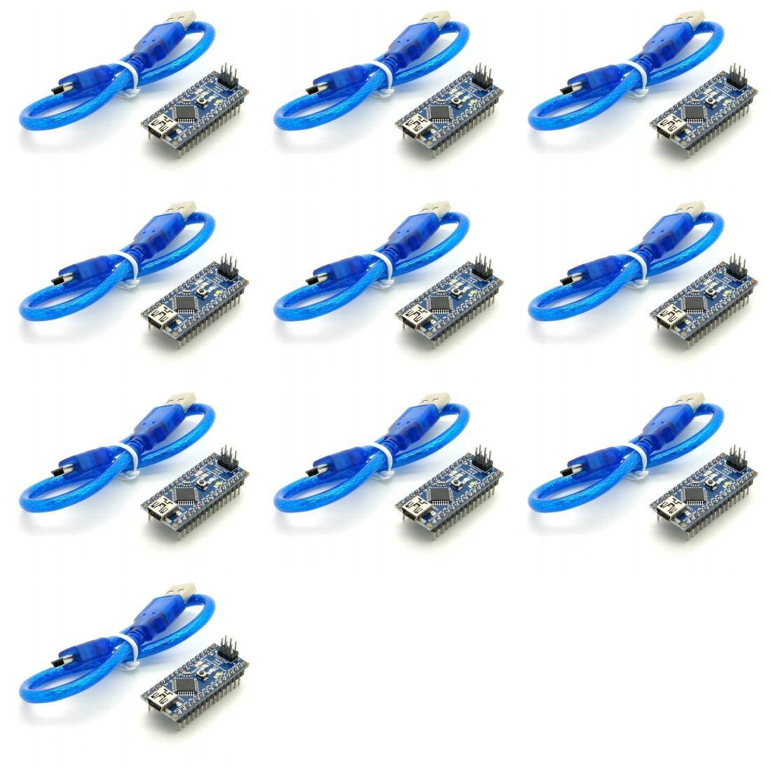 10 x kompatibler Arduino Nano mit Atmel Mega 328P Prozessor & FTDI FT232RL USB-Chipsatz inkl. Kabel