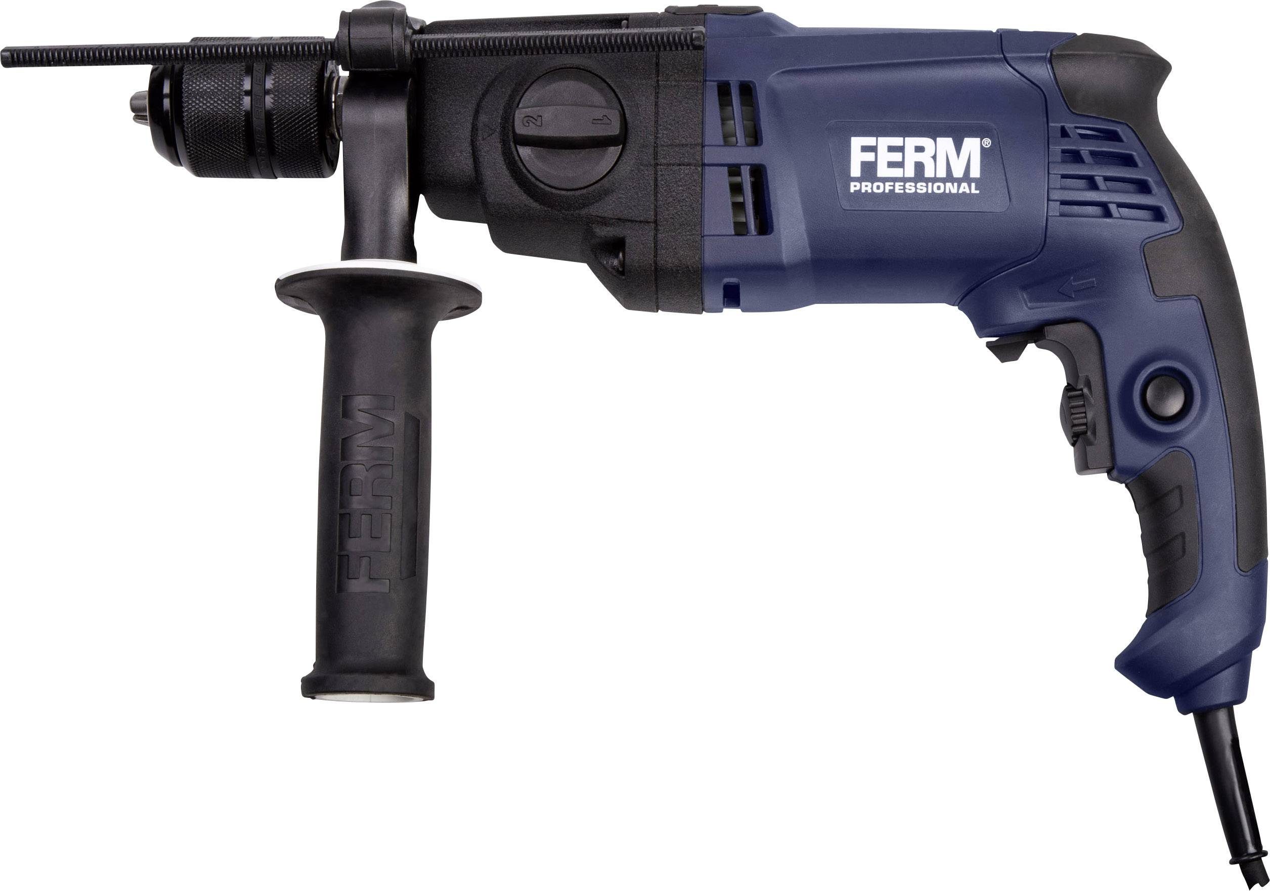 Dieser FERM 1050-Watt Professional Schalbohrhammer mit 2 Gang ist die ideale Maschine für bohren in Holz, Metall, Beton und Stein. So können Sie mit dem PDM1045P_K bis 30 mm in Holz, 20 mm in Beton und 13 mm in Stahl bohren.