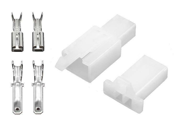 Set mit 10 Steckergehäusen und 10 Buchsengehäusen. Inklusive Flachsteckhülsen und Flachsteckern mit Rasterzunge. Die Ausführung 2,8 mm wird häufig bei Motorrädern, Rollern, ATV und Quads eingesetzt. Die Ausführung 6,3 mm wird vor allem in PKW und LKW verwendet.
