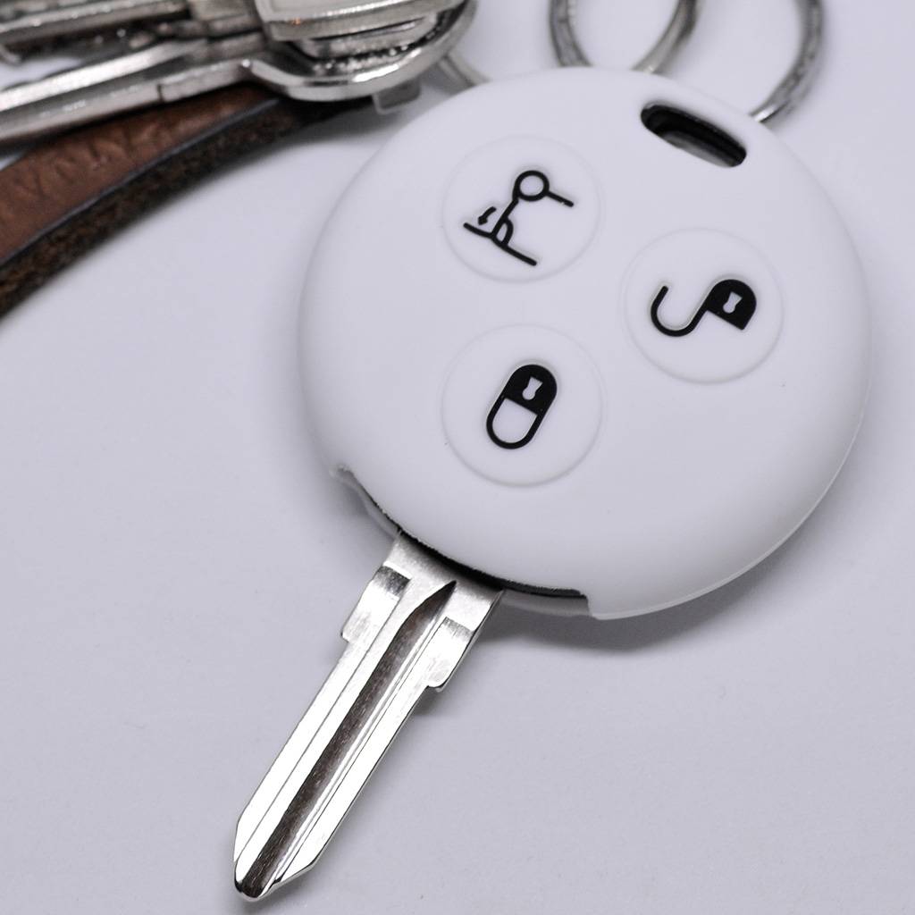 Auto Schlüssel Silikon Schutz Hülle Weiß kompatibel mit Smart 450 Fortwo Cabrio Coupe 3 Tasten Funk Fernbedienung