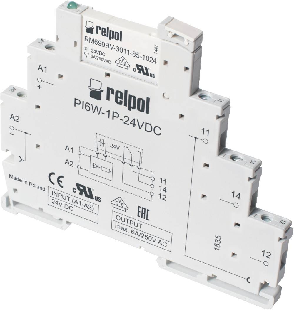 Schnittstellenrelais, Ausgang: 1C/O (Gold), Versorgung: 42VAC/DC, Nennlast der Kontakte mit Goldbeschichtung: 0,05A, Breite: 6,2mm