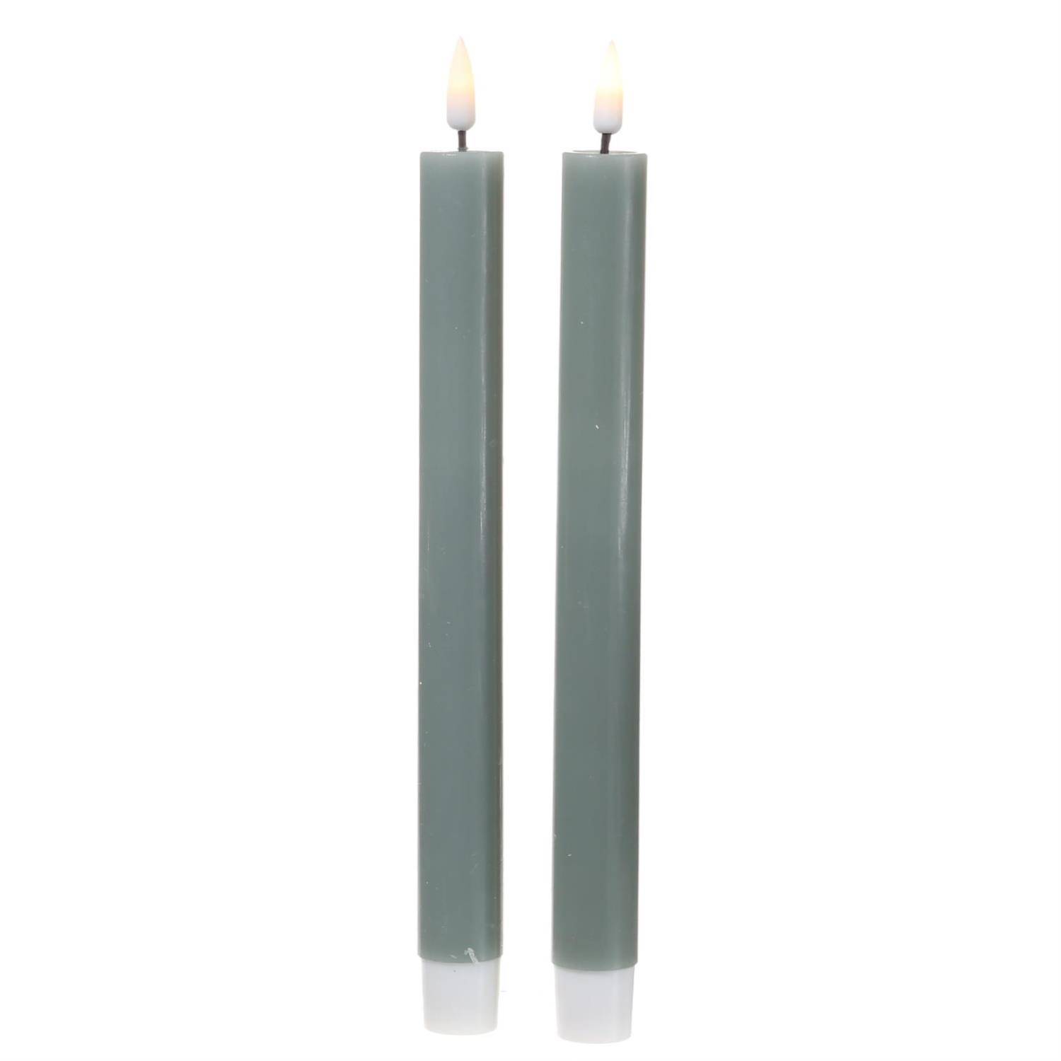 Die LED Stabkerzen MIA erzeugen dank ihrer super-realistischen 3D LED Flamme ein authentisches Kerzenlicht-Erlebnis.Dank des hochwertigen Echtwachs-Materials und der 3D Flamme sind die Tafelkerzen kaum von echten Kerzen zu unterscheiden.Mit einer Leuchtdauer von bis zu 300 Stunden bieten Dir die Dinnerkerzen viele leuchtende Stunden. Du wirst lange Deine Freude an dieser hochwertigen LED Stabkerzen haben.Die salbeigrüne Farbe der LED Stabkerzen sorgt für eine romantische und elegante Stimmung und Gemütlichkeit, ideal für Tischdekorationen bei Feiern.Die LED Stabkerzen können über eine optionale Fernbedienung gesteuert werden. Darüber kannst Du auch den eingebauten Timer aktivieren..