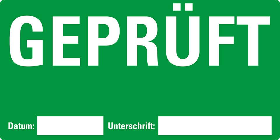 Etikett GEPRÜFT, beschriftbar, grün, Haftpapier, ablösbar, 148x74mm, 500/Rolle