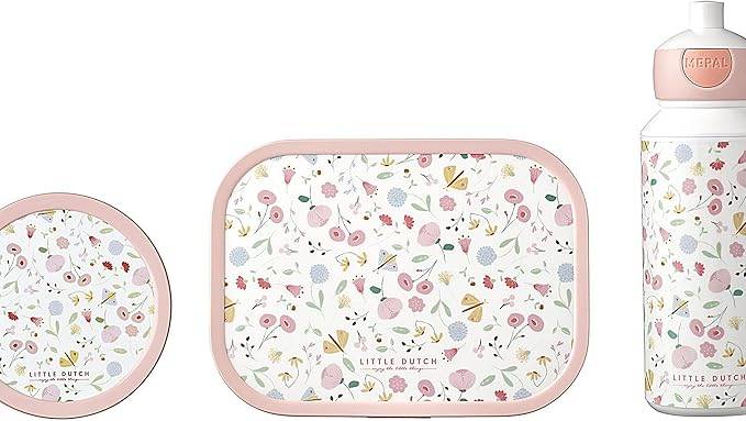 Mepal | Lunchset Campus Flowers & Butterflies | praktischer Begleiter für Schule & Freizeit | inkl. Brotdose & Trinkflasche | kinderleicht zu