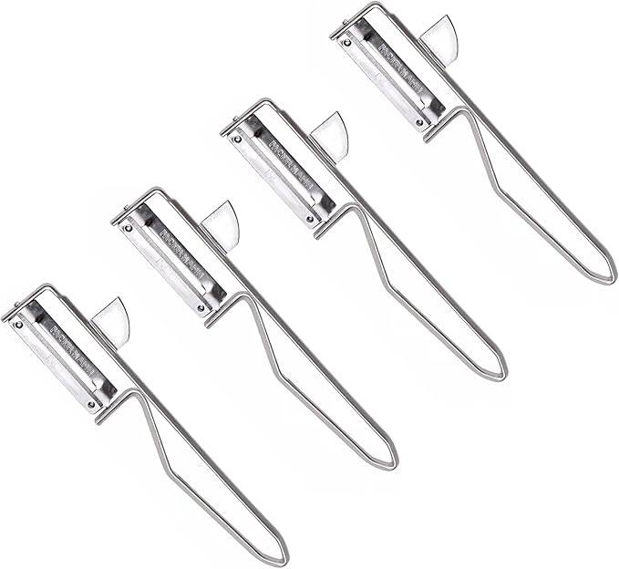 SPAR-SET: bestehend aus 2 original Fackelmann-Sparschälern zum Schälen von runden oder länglichem Obst und Gemüse wie Kartoffeln, Zucchini, Möhren, Spargel, Äpfel etc., geeignet für Rechtshänder, inkl. geschärftem Ausstecher für Schadstellen KLINGE: Die gelagerte Pendelklinge passt sich automatisch den Konturen des Lebensmittels an und schält somit sparsam, das Schnittgut wird sauber abgetrennt und verstopft nicht die Klinge ROBUST & PFLEGELEICHT – Die Multifunktionsgemüseschäler bestehen aus hochwertigem Edelstahl, sind somit besonders robust und können sogar in der Spülmaschine gereinigt werden ZEITLOSES DESIGN – Der Look ist in schlichtem Edelstahl mit verchromtem Griff gehalten, wodurch die Schäler perfekt in klassische Küchen passen aber auch in jedem anderen Ambiente überzeugen LIEFERUMFANG – 4 x Sparschäler: ca. 15 x 1 x 4 cm, spülmaschinengeeignet, hochwertiger Edelstahl DESIGNED IN GERMANY: sehr langlebig, sorgfältig solide Verarbeitung, einfache Reinigung per Hand, nicht spülmaschinengeeignet, Ersatzklinge verfügbar