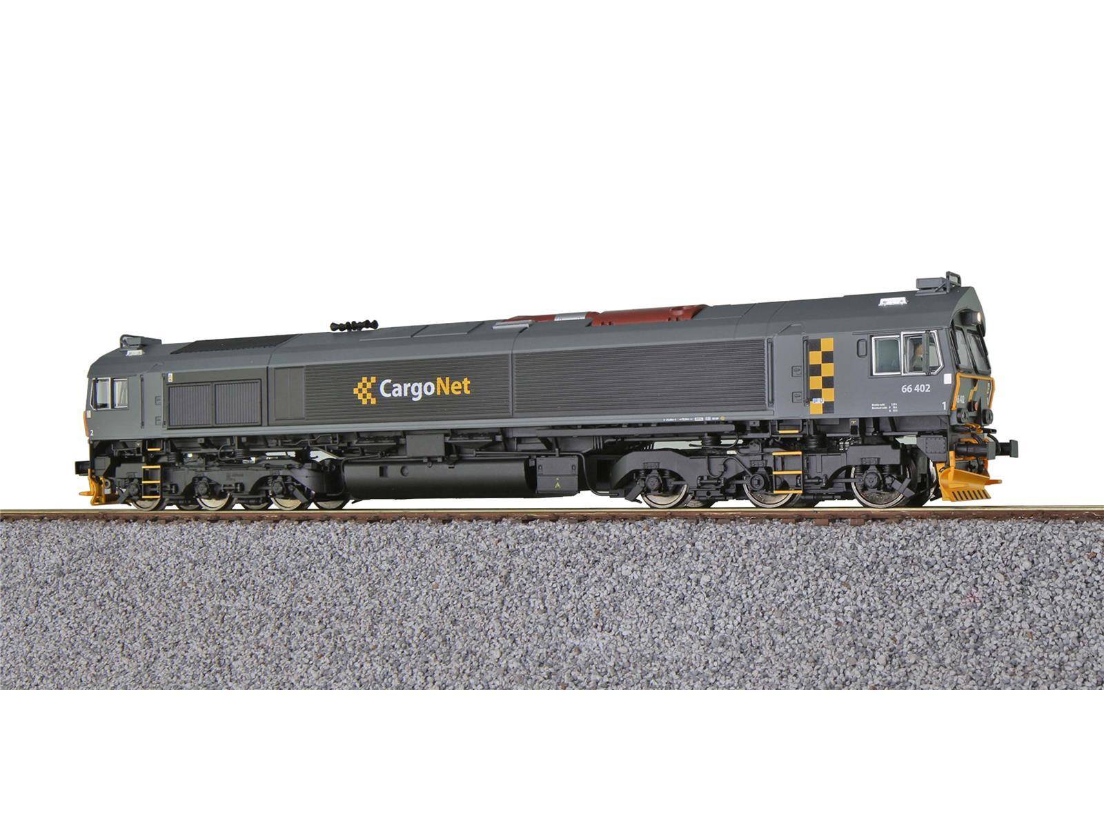 Ab 2001 bot die amerikanische Electro-Motive Division (EMD) mit der bereits in Großbritannien erprobten Class 66 den Kontinentaleuropäischen Eisenbahnverkehrsunternehmen (EVU) vergleichsweise preisgünstige Strecken-Dieselloks für schwere Güterzüge an. Die als JT 42 CWR bezeichneten Sechsachser basieren auf der einfach aufgebauten und sehr zuverlässigen amerikanischen SD40-2. Als erste Bahngesellschaft setzte ab 1999 die Häfen und Güterverkehr Köln AG HGK zwei der dieselelektrisch angetriebenen Class 66 ein. Seit 2006 fährt mit der modifizierten JT 42 CWR M eine zweite Bauserie der Class 66, die vielfach auch als Class 77 bezeichnet wird. Der äußerlich markanteste Unterschied zur ersten Serie ist die einzelne, auf der linken Lokseite eingebaute Tür zum Maschinenraum. Class 66/77 findet man heute auch in Frankreich, Belgien, den Niederlanden, Luxemburg, Dänemark, Norwegen und England. Es wurden insgesamt etwa 650 Loks an europäische Kunden ausgeliefert. Die langgestreckte, dem kleinen englischen Lichtraumprofil angepasste Silhouette, der kantige Aufbau und das Fahrwerk mit den massiven Drehgestellen und der wilden Leitungsführung machen die Class 66 unverwechselbar. Der GM-Zwölfzylinder-Zweitaktmotor 12N-710G3B-EC entwickelt eine Leistung von 3194 PS (2350kW). Die Anfahrzugkraft beträgt 409 kN, die Dauerzugkraft 260 kN. Mit einer Höchstgeschwindigkeit von 120 km/h können die Class 66 selbst auf Hauptstrecken mit anderen Zügen mithalten. Trotz des hohen Lärmpegels auf dem Führerstand haben sich die Loks unter Lokführern einen guten Ruf erarbeitet, wenn es darum geht, schwere Züge auch auf schlüpfrigen Schienen vom Fleck zu bekommen. In Deutschland sind auch zahlreiche Loks anderer europäischer Privatbahnen beziehungsweise Leasingnehmern unterwegs. Um die Rangierlok einzusparen, bleiben die Loks zumeist vom Anschlussgleis des Absenders bis zum Zielort des Zuges vorgespannt, wobei in Kauf genommen wird, dass die Loks auch unter Fahrdraht unterwegs sind.• Aufbau, Rahmen und Getriebekästen aus Metall• Durchbrochene Lüfter im Dachbereich• Mehrfarbiger Führerstand mit Lokführerfigur• Mehrteilige Drehgestell-Blenden• Separat angesetzte Griffstangen und Trittstufen• Kupplung in kulissengeführtem NEM-Schacht• Fünfpoliger ESU-Motor mit zwei Schwungmassen• Antrieb über Kardan-/Schnecken-Getriebe auf vier Achsen, vier Haftreifen• LokSound-Decoder für DCC, Motorola®, M4 und Selectrix-Betrieb• Selbständige Anmeldung an Zentralen mit RailComPlus®- oder mfx®-Funktionalität• PowerPack-Speicherkondensator für unterbrechungsfreie Spannungsversorgung• Doppellautsprecher mit großer Schallkapsel für höchsten Soundgenuss• Lastabhängiger Raucherzeuger, synchron zum LokSound• Digitalisierte Originalgeräusche• Sensorgesteuerte Geräusche bei langsamer Kurvenfahrt• Fahrtrichtungsabhängiger Lichtwechsel, länderspezifische Lichtfunktionen, zugseitiges Spitzensignal abschaltbar, Führerstand- und Führerpultbeleuchtung schaltbar• Bremsfunken beim scharfen Bremsen• Pipette zum Befüllen des Raucherzeugers, Pufferträger-Zurüstteile sowie eine zweite Kupplung liegen bei• Befahrbarer Mindestradius = 360 mm• Länge über Puffer = 247 mm