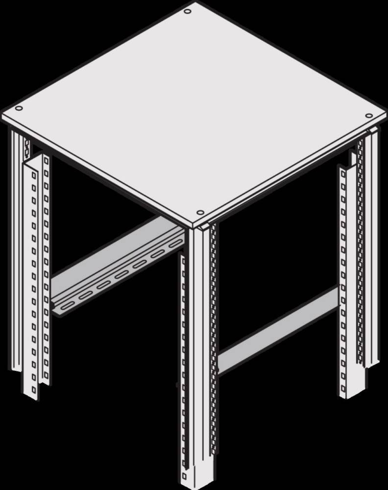 -Winkelprofilen. Breite Auflagefläche. In 1 HE-Schritten einhängbar.
