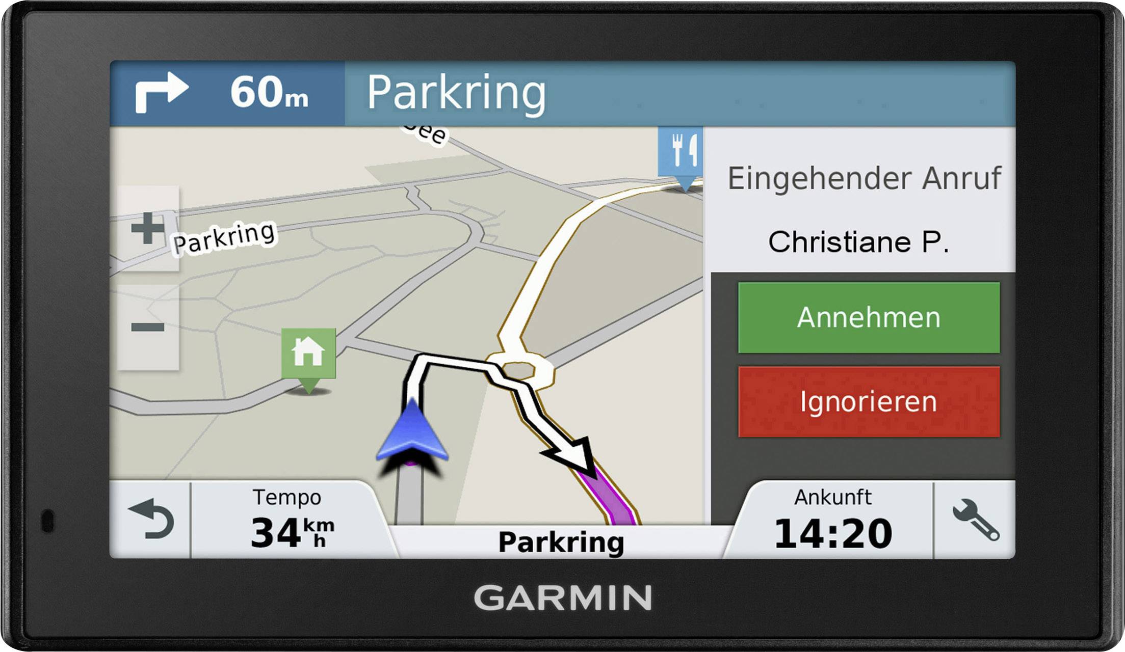Mit Sicherheit besser fahren - mit dem Garmin DriveSmart™ 5 MT-D mit 5 Zoll Touchdisplay. Inklusive Sicherheitspaket, Garmin Live Traffic Verkehrsinfos in Echtzeit mit ARD TPEG via DAB+ oder Smartphone Link App für Informationen zu Verkehrsbehinderungen und Umleitungsvorschlägen mit Anzeige der möglichen Zeitersparnis. Immer aktuell informiert mit den Echtzeitdiensten für Parkplatzsuche, Wetter und Tankpreisen. Mit Bluetooth® -Funktionen wie Smart Notifications⁴ und Freisprechfunktion³, sowie Sprachsteuerung, bleiben die Hände am Steuer, und mit POIs von TripAdvisor® und Foursquare® beliebte Orte und Aktivitäten entdecken. Mit LiveTrack die aktuelle Position teilen oder Navidaten via Watch Link App an eine Garmin Smartwatch senden, für Fahrerhinweise oder die Kompassfunktion für die letzten Meter zum Ziel oder zurück zum Auto.