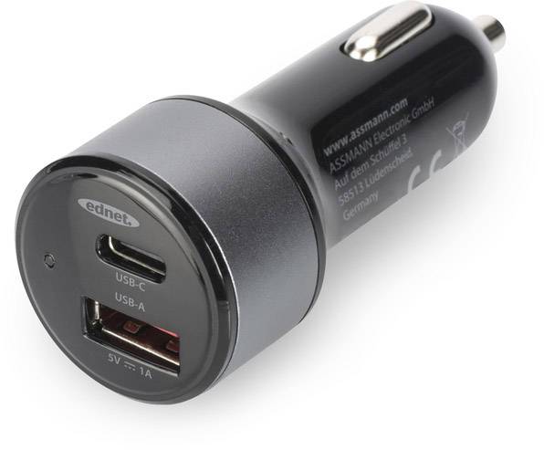 Der Dual Auto-Ladeadapter, USB Type-C™ von ednet garantiert schnellstmögliches Aufladen Ihrer Mobilgeräte.