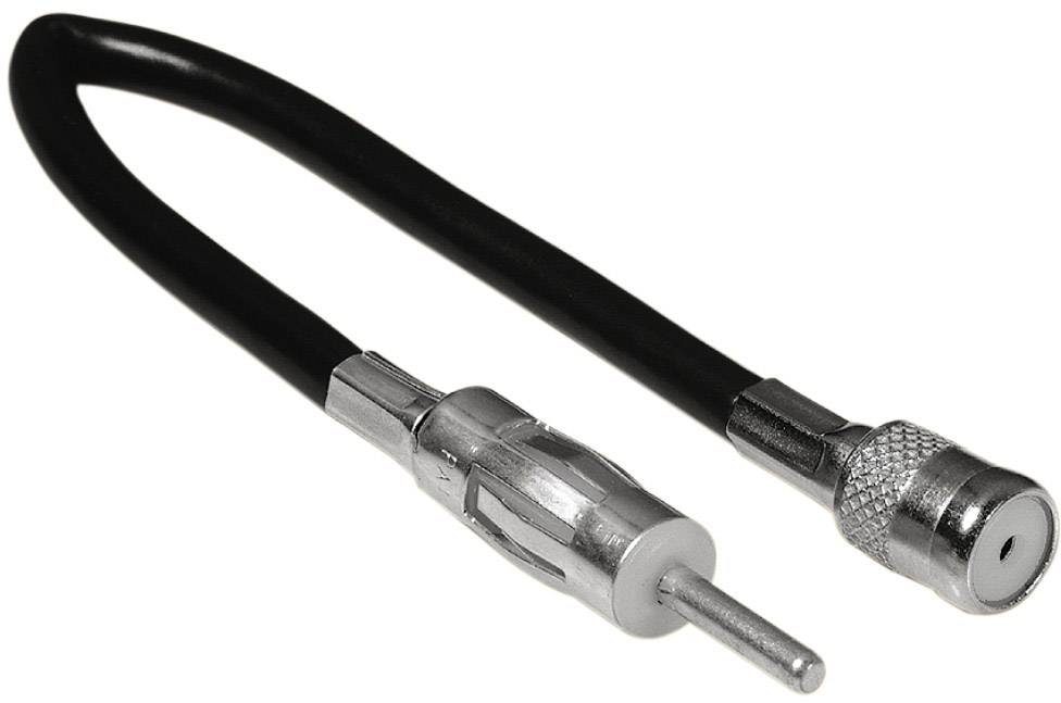 Zum Anschluss der fahrzeugspezifischen Antenne an ein nachgerüstetes Autoradio bzw. Fremdfabrikat · Adapter für 50 Ohm (ISO)-Antennenkabel und ein Autoradio mit Standardeingang (150 Ohm) · Ausführung: ISO-Kupplung - DIN-Stecker.