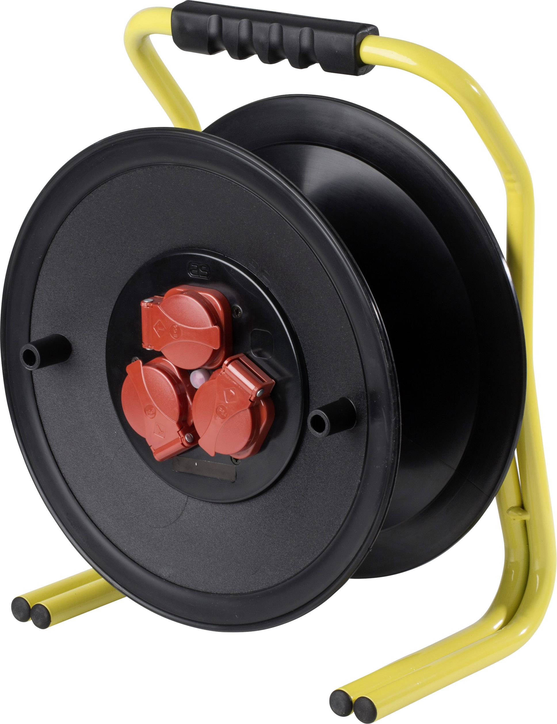 Die Leertrommel verfügt über ein Fassungsvermögen von bis zu 50m Kabel und einen VDE-Thermoschutzschalter. Die Leitungen sind von einer Elektrofachkraft anzuschließen.