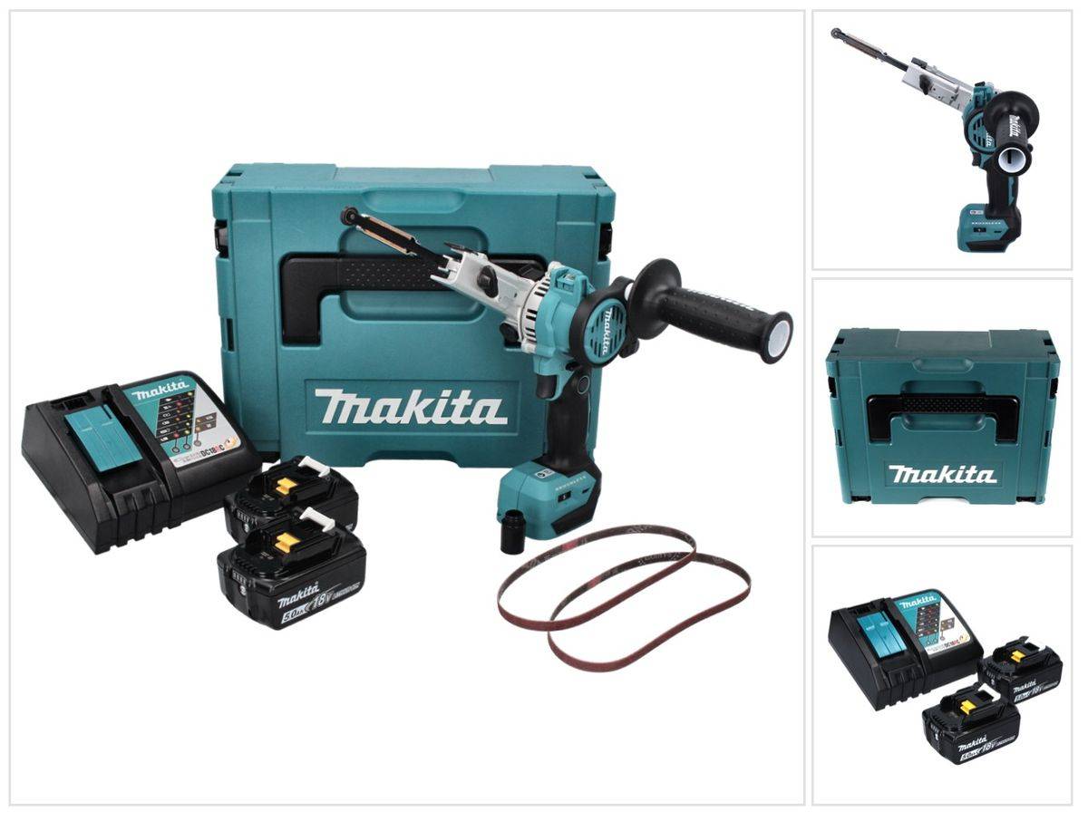 Makita DBS 180 RTJ Akku Bandfeile 18 V 9 x 533 mm Brushless + 2x Akku 5,0 Ah + Ladegerät + Makpac