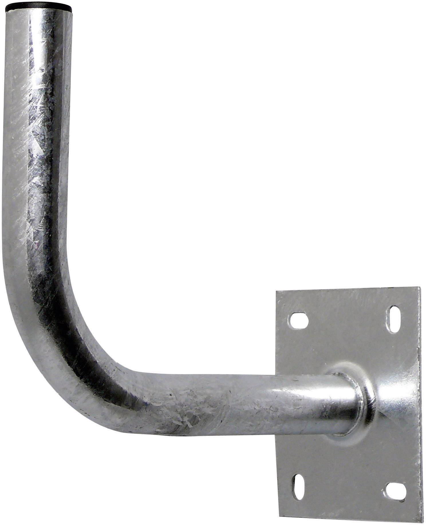 Material: Qualitäts- Stahl · Oberfläche: Feuerverzinkung, ca. 80µ · Wandabstand: 300 mm · Höhe: 240 mm · Halterohr: Ø 38 mm x 2,0 mm · Wandplatte: 150 mm x 120 mm x 3,0 mm · Wandplatte mit Langlöchern zum exakten Ausrichten und Verstärkungskragen um noch mehr Stabilität zu erhalten · geeignet für Sat- Antennen bis Ø 75 cm.