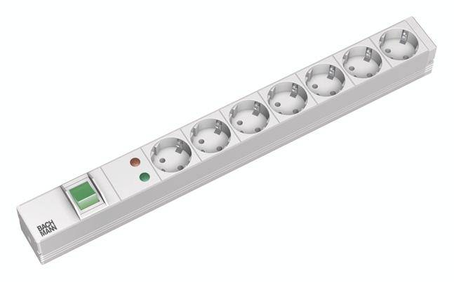 Bachmann 333.405 19 Zoll Netzwerkschrank-Steckdosenleiste 1 HE Schutzkontaktsteckdose Überspannungsschutz Hellgrau
