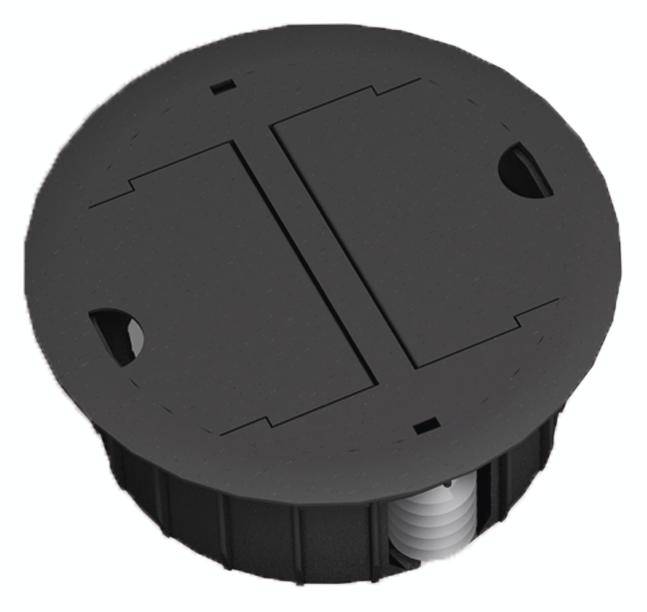 Kabeldurchlass fur Doppel- und Hohlboden zur Durchfuhrung von Kabeln, mit abnehmbaren Deckel als Lochabdeckung mit zwei Leitungsausfuhrungen.