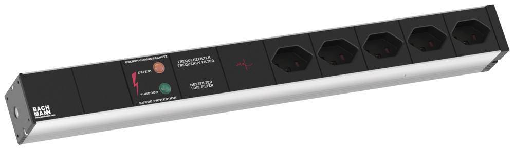 Bachmann 800.1265 19 Zoll Netzwerkschrank-Steckdosenleiste 1 HE Überspannungsschutz