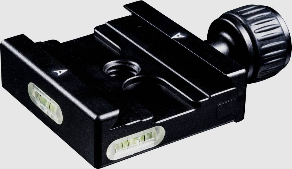 Universelles Hilfsmittel im Foto- VideobereichDiese Arca Swiss Schnellwechselklemme ist ein sehr praktisches Hilfsmittel für viele Anwendungen im Foto- und Videobereich. Die Klemme kann einfach und schnell auf so gut wie jedem Stativ, Halter oder einer Klemme mit einer Ľ oder 3/8 Zoll Gewindeschraube befestigt werden. Dabei ist es egal, ob Sie z.B. einen bestehenden Kugelkopf mit einem Arca-Swiss Schnellwechselsystem ausstatten möchten oder nachträglich eine simple Rohrhalterung, die vorher lediglich über einen Ľ Zoll Gewindeanschluß verfügte, mit diesem praktischen Features aufwerten möchten. Dank dieser Klemme steht Ihnen nach einem Umbau ein hochwertiges und passgenaues, Arca Swiss kompatibles Schnellwechselsystem für viele Anwendungen zur Verfügung. Die Klemme ist universell einsetzbar auf Stativen, Stativköpfen, Klemmen, Halterungen, Griffen mit 3/8 oder Ľ Zoll Gewindebolzen. Arca-Swiss kompatible SchnellwechselklemmeDiese Klemme bietet ein Arca Swiss kompatibles Schnellwechselsystem. Die Schnellwechselklemme besteht aus einer leichten und hochfesten Aluminiumlegierung und wird per CNC Technologie gefräst und anschließend schwarz eloxiert. Dies sorgt für eine hervorragende Passgenauigkeit und eine extrem kratzfeste Oberfläche. Die seitlich angebrachten Mittenmarkierungen erleichtern die genaue Ausrichtung einer Schnellwechselplatte und gewährleisten eine komfortable Bedienung. In die Klemme sind zwei Nuten eingelassen, diese sind auf die standardisierten Fallsicherungsstifte von Arca-Swiss kompatiblen Schnellwechselplatten abgestimmt. Somit sind alle gängigen Arca Swiss kompatiblen Schnellwechselplatten für die Verwendung mit dieser Klemme geeignet. Die Schnellwechselplatte ist mit einer 3/8 Zoll Gewindebohrung versehen. Mithilfe dieser Bohrung kann die Klemme auf Kugelköpfen, Stativköpfen oder Neigern befestigt werden. Ein Gewindeadapter von 3/8 auf Ľ Zoll ist im Lieferumfang enthalten. Somit kann die Klemme auch an Ľ Zoll Schrauben verschraubt werden. Die Klemme ist kompatibel mit sämtlichen Arca Swiss kompatiblen Schnellwechselplatten von mantona und selbstverständlich auch geeignet für entsprechende Platten anderer Hersteller. Features: Voll Arca-Swiss kompatibel und hochpräzise gefertigt Hochfeste und leichte Aluminiumlegierung, CNC gefräst und schwarz eloxiert Inkl. zwei Wasserwaagen und einer Dosenlibelle Mit praktischer Mittenmarkierung zur schnellen und genauen Justierung Länge Klemme: 50 mm Breite Klemme ohne Verschlußknopf: 48 mm Höhe: 16 mm Breite inkl. Verschlußknopf: 78 mm Klemmbereich, geeignet für Arca Swiss Schnellwechselplatten von 36 bis 48 mm Breite Gewicht: 88 Gramm Farbe: Schwarz Inkl. 1/4 auf 3/8 Zoll Gewindeadapter