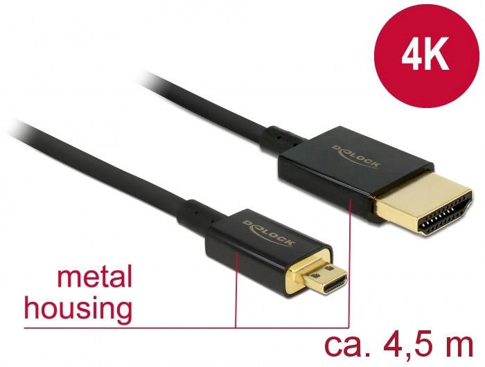 Delock HDMI Anschlusskabel HDMI-A Stecker, HDMI-Micro-D Stecker 4.50 m Schwarz 84785 4K UHD, vergoldete Steckkontakte HDMI-Kabel
