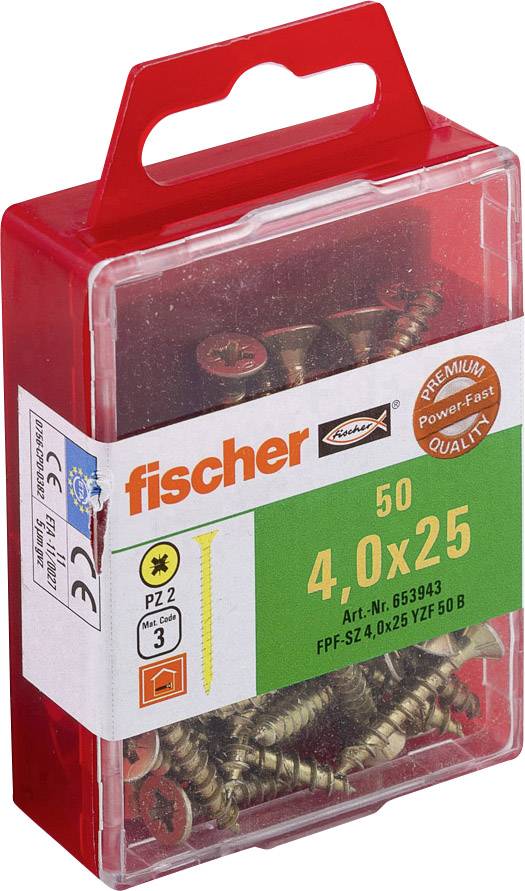 Fischer 653943 Senkkopfschrauben 4 mm 25 mm Kreuzschlitz Pozidriv galvanisch verzinkt 50 St.