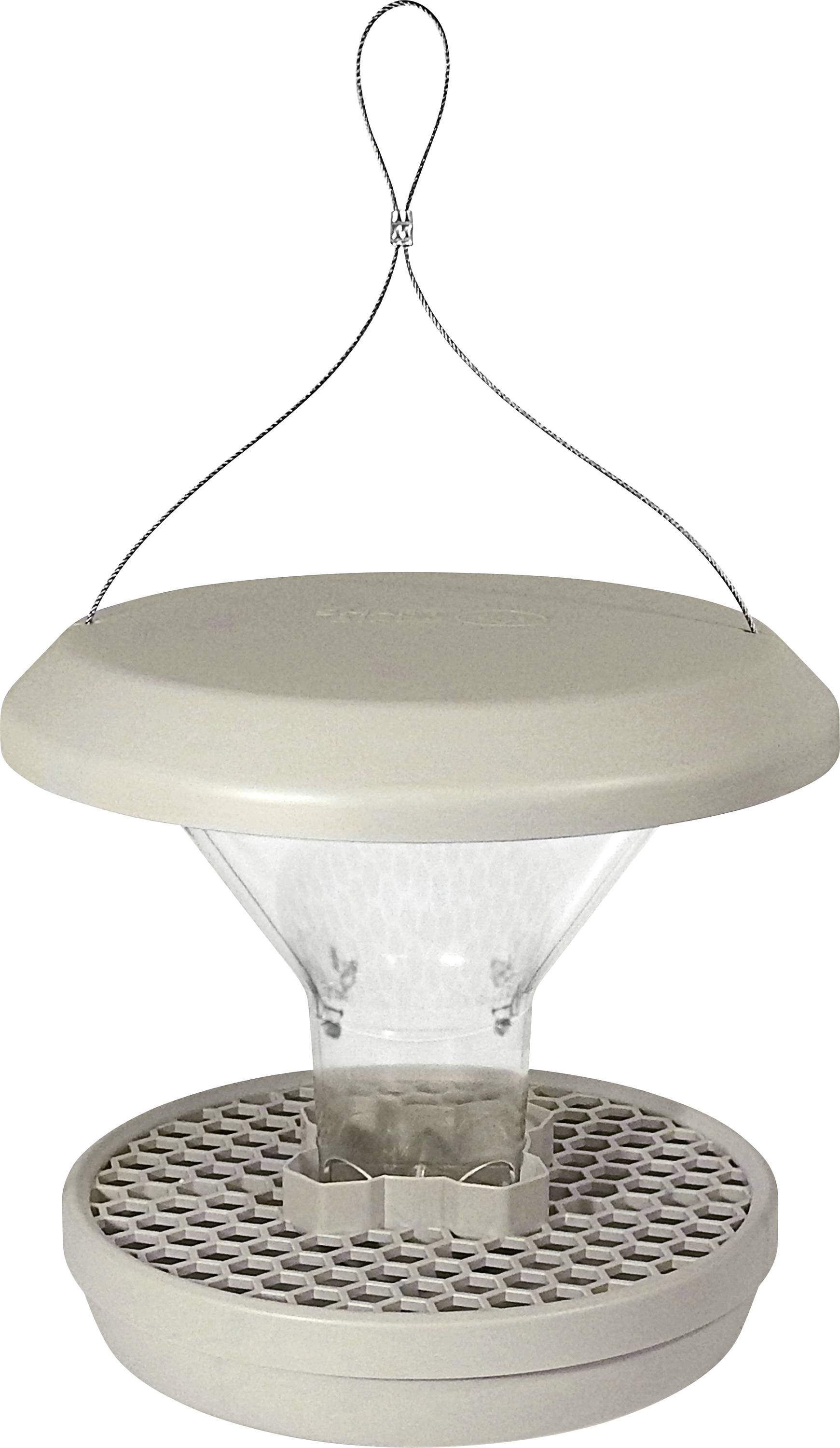Strukturiertes und hygienisches Design mit Fangschalle verhindert, dass Vogelfutter auf den Boden fällt. Somit können gezielt Vögel Futter erhalten während Nagetiere, wie Mäuse und Ratten, leer ausgehen.