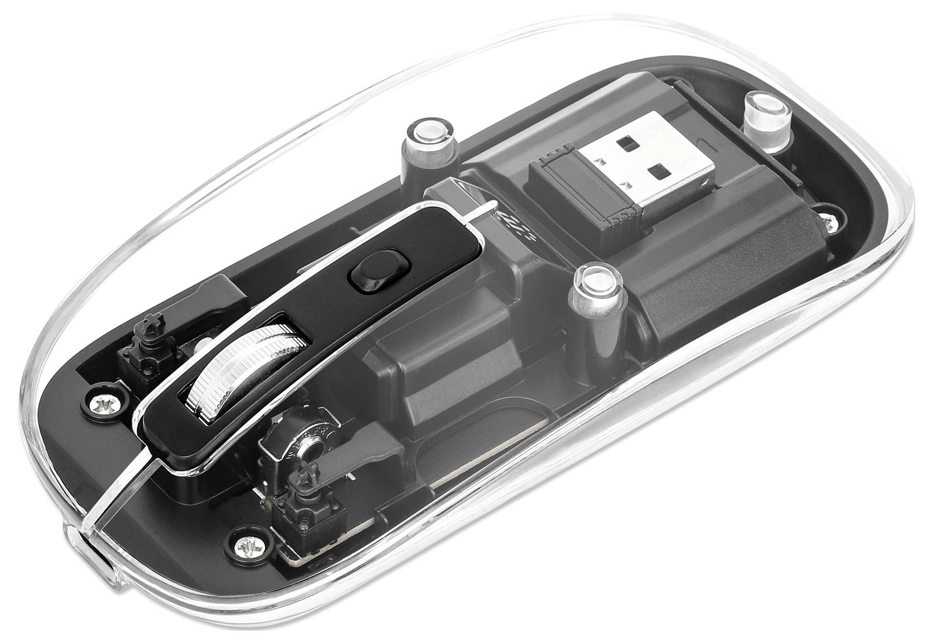 Manhattan Maus Kabellos Optisch Transparent, Schwarz 4 Tasten 800 dpi, 1200 dpi, 1600 dpi Geräuscharme Tasten, Integriertes