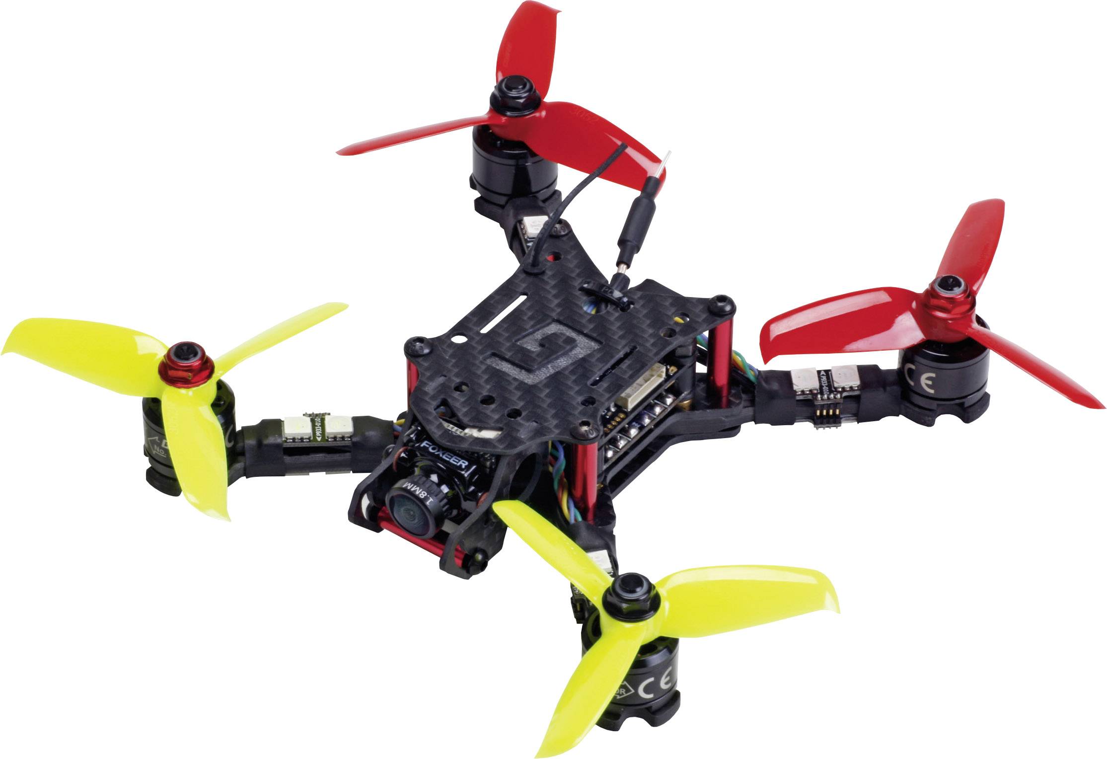 Der Race Copter wiegt flugfertig unter 250 g und darf daher bis 30 m Höhe auch ohne Spotter im FPV Einsatz geflogen werden.
