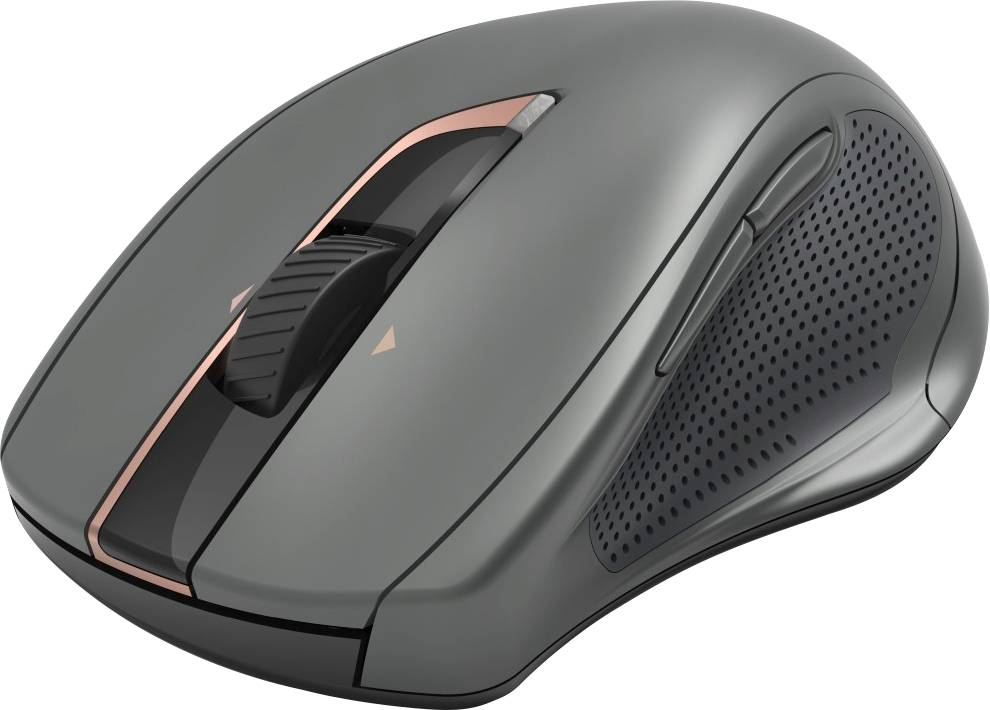 GERÄUSCHLOSE UND ERGONOMISCHE LASERMAUS Die kabellose Maus macht einfach ihren Job, ohne Sie zu beeinträchtigen und unterstützt Sie beim konzentrierten und effizienten Arbeiten. Kein lästiges Klickgeräusch stört Sie oder Ihre Kollegen – denn die Maus hat nicht nur Köpfchen, sondern ist dank geräuschloser Tasten auch ein stiller Mitarbeiter. Dabei schmiegt sich die ergonomische Form angenehm in Ihre Hand – für lockeres und unverkrampftes Steuern.
