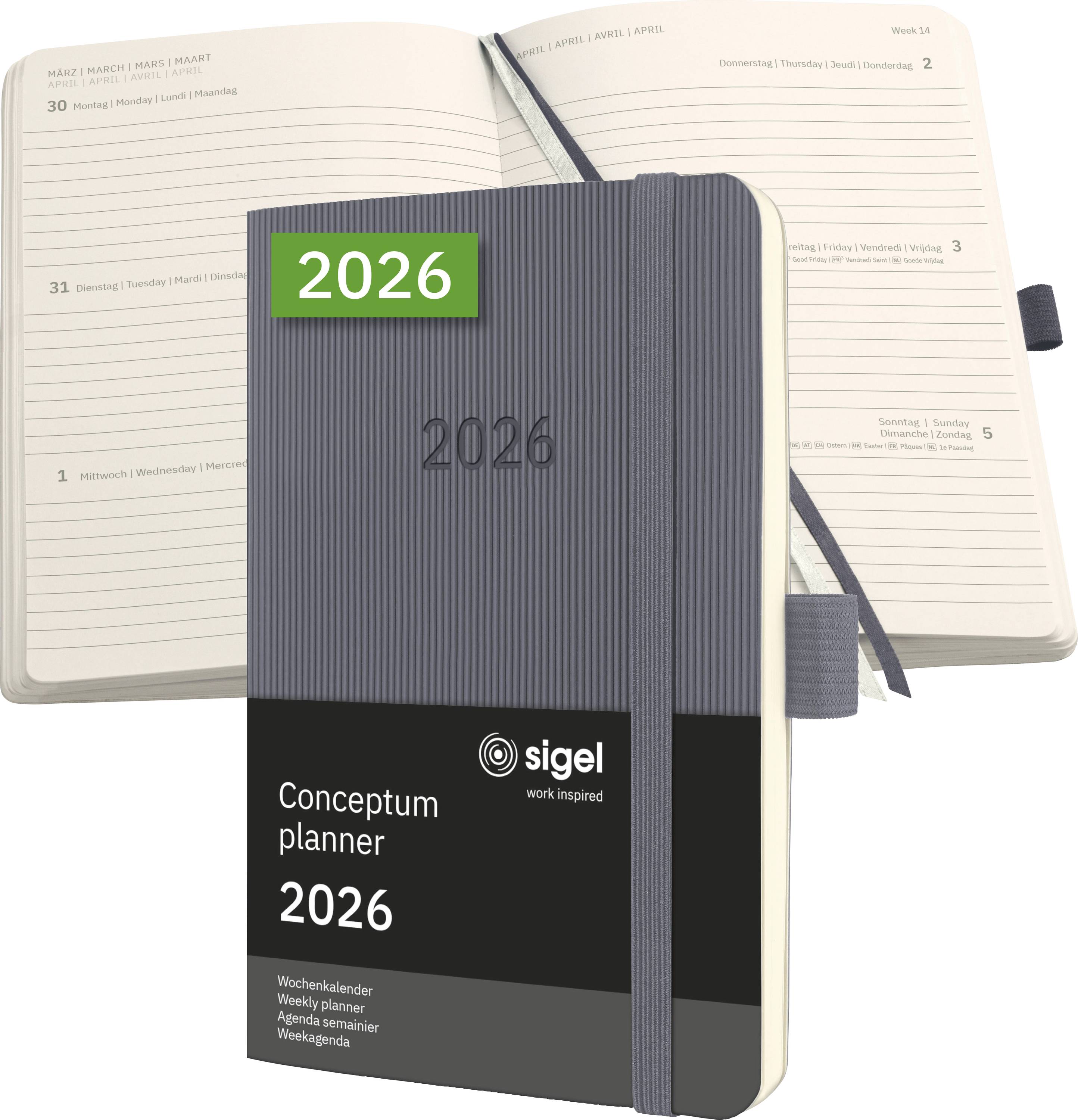 Dank seines flexiblen Softcovers in dunkelgrau passt der Terminplaner gut in jede Tasche. Elegantes Design der international ausgezeichneten Conceptum Serie mit gerillter Softwave-Oberfläche - fühlbar und sichtbar einzigartig.