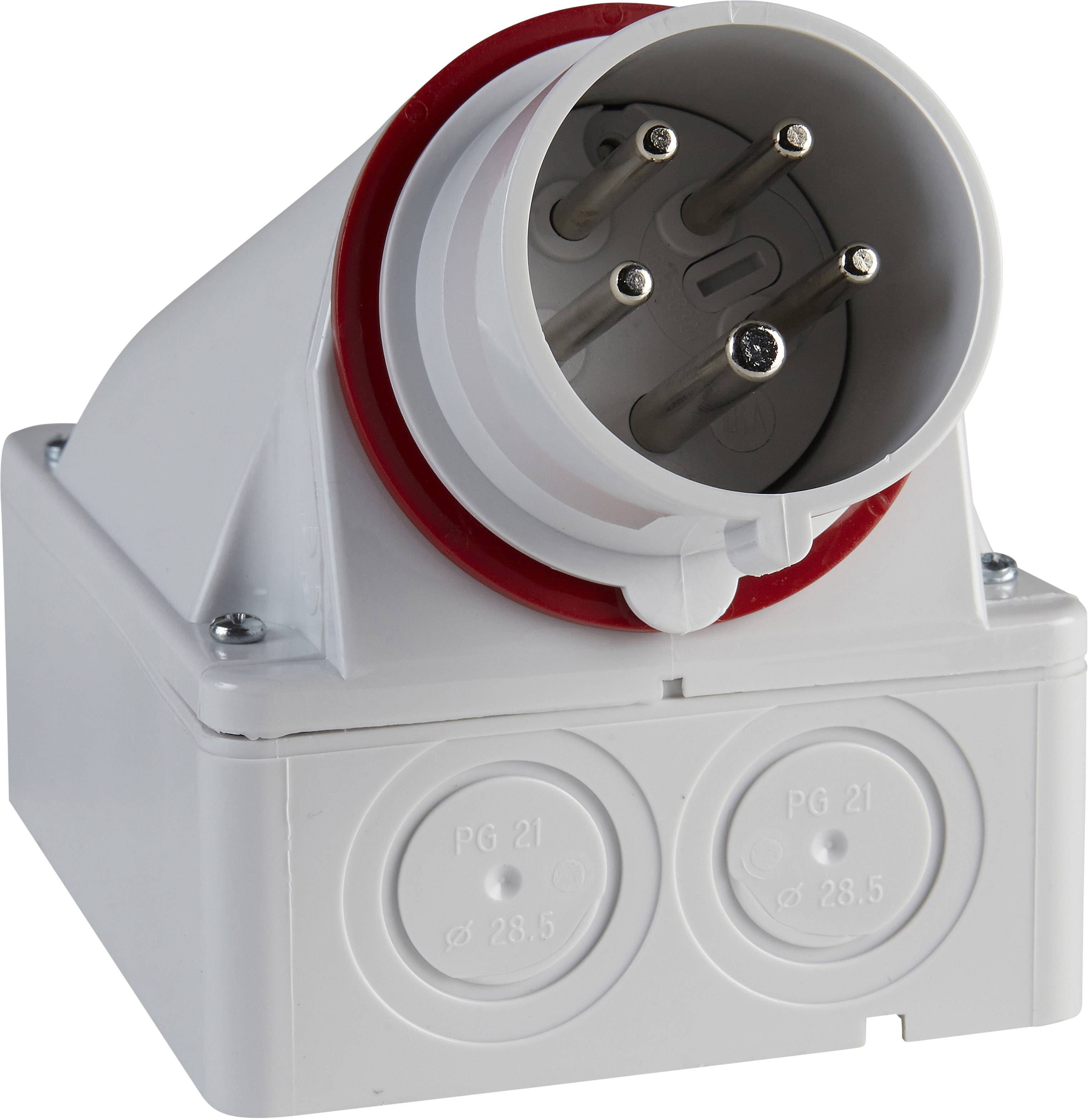 Wandsteckdose mit Phasenwender, 16A, 3p+N+E, 380-415 V AC, IP44. Produkt oder Komponententyp: Stecker mit Phasenwender - Kurzbezeichnung des Gerats: PratiKa-Stecker - Stecker/Steckdosen-Kategorie: Niederspannung - Beschreibung der Pole: 3P+N+E - Netzwerkanschluss: AC - Ausgangsstandard: industriell.