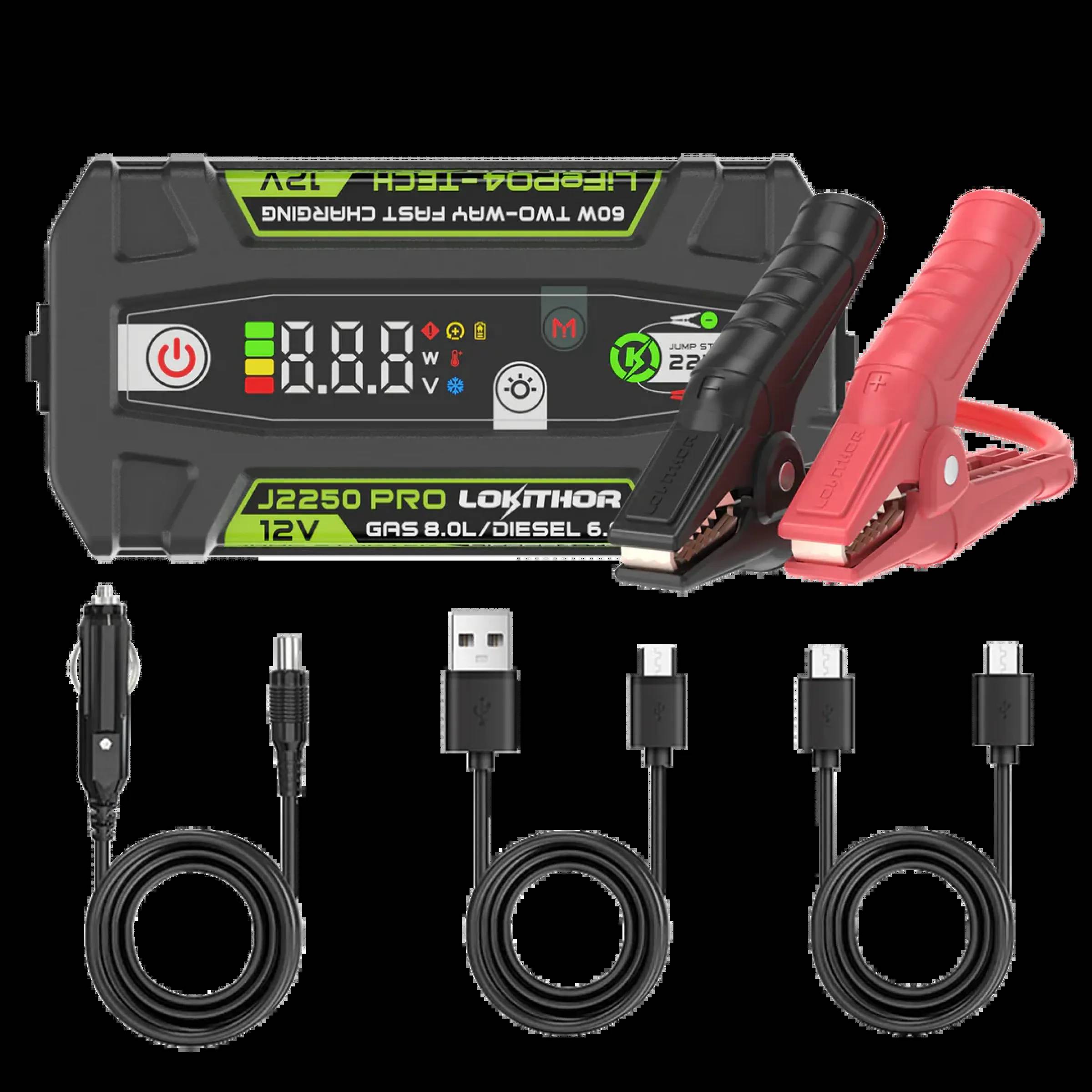 Spitzenstrom 2250A: Startet Benzinmotoren bis 8,0 L und Diesel bis 6,0 L zuverlässig. LiFePO4-Technologie: Über 2000 Ladezyklen bei 100% Entladetiefe, hohe chemische Sicherheit. Schnellladefunktion: Gerät in nur 50 Minuten voll einsatzbereit. Umfassender Schutz: 10-facher Sicherheitsschutz, u.a. gegen Überhitzung, Kurzschluss, Verpolung und Überlast. Multifunktions-Powerbank: USB-C-Anschluss mit bis zu 60W Leistung, lädt Notebooks, Smartphones und mehr. Notlichtfunktion: 3 Lichtmodi (Dauerlicht, Stroboskop, SOS), bis zu 13 Stunden Leuchtdauer – ideal für Notfälle. Robust und kompakt: Gewicht unter 2 kg, ideal auch für unterwegs. Vielseitig einsetzbar: Für Autos, Lastwagen, Boote, Traktoren und andere 12V-Fahrzeuge. Sicherheit: Hergestellt aus nicht-gefährlichen Materialien, minimiert das Risiko des thermischen Durchgehens. Intuitive Bedienung: Dank klarer Statusanzeige und intelligenter Schutzmechanismen bestens für den Alltag geeignet