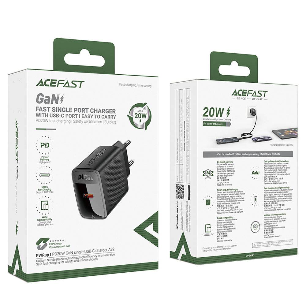 Acefast A82 GaN USB-C PD 20W Netzwerkladegerät – Schwarz