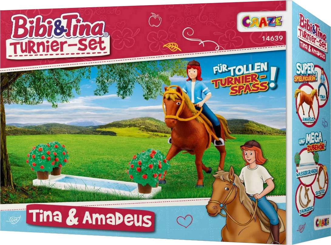 Das Turnier-Set Tina und Amadeus lässt die Herzen aller BIBI und TINA-Fans höherschlagen - denn neben 2 exklusiven Spielfiguren (Tina u. Amadeus) bietet das Set ganz viel weiteres, tolles Zubehör wie zum Beispiel einen Wassergraben, einen Sattel oder eine Trense mit dem sich spannende Reitturniere von Bibis bester Freundin Tina nachspielen lassen.