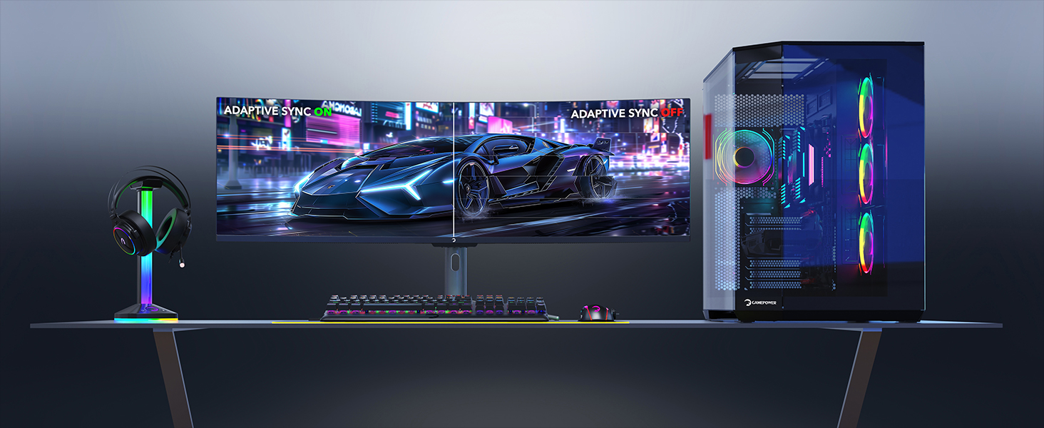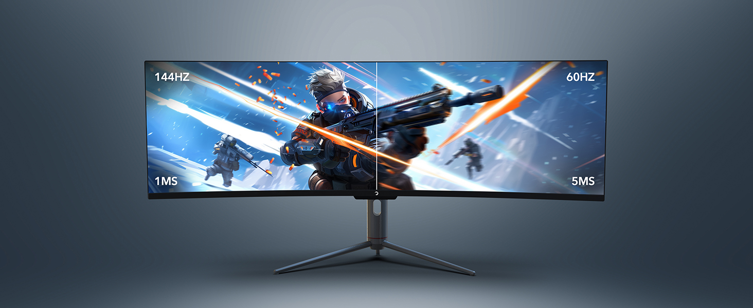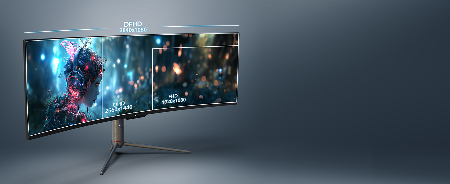 Mit Double Full HD (DFHD) bietet der WQ49 eine beeindruckende Auflösung von 3840×1080. Das 32:9-Seitenverhältnis ermöglicht eine panoramische Sicht und schafft eine fesselnde Gaming-Atmosphäre.