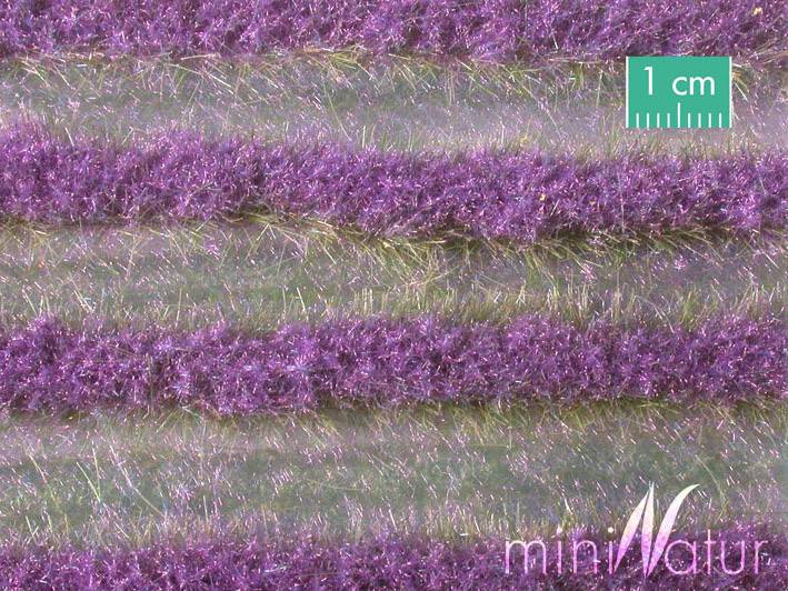 Die lilafarbenen Lavendelstreifen können für die Landschaftsgestaltung von Feldern und Wiesen eingesetzt werden. Die, auf einer Kunststofffolie aufgebrachten Streifen können vom Träger entfernt und mit Klebstoff in die Modelllandschaft eingeklebt werden.