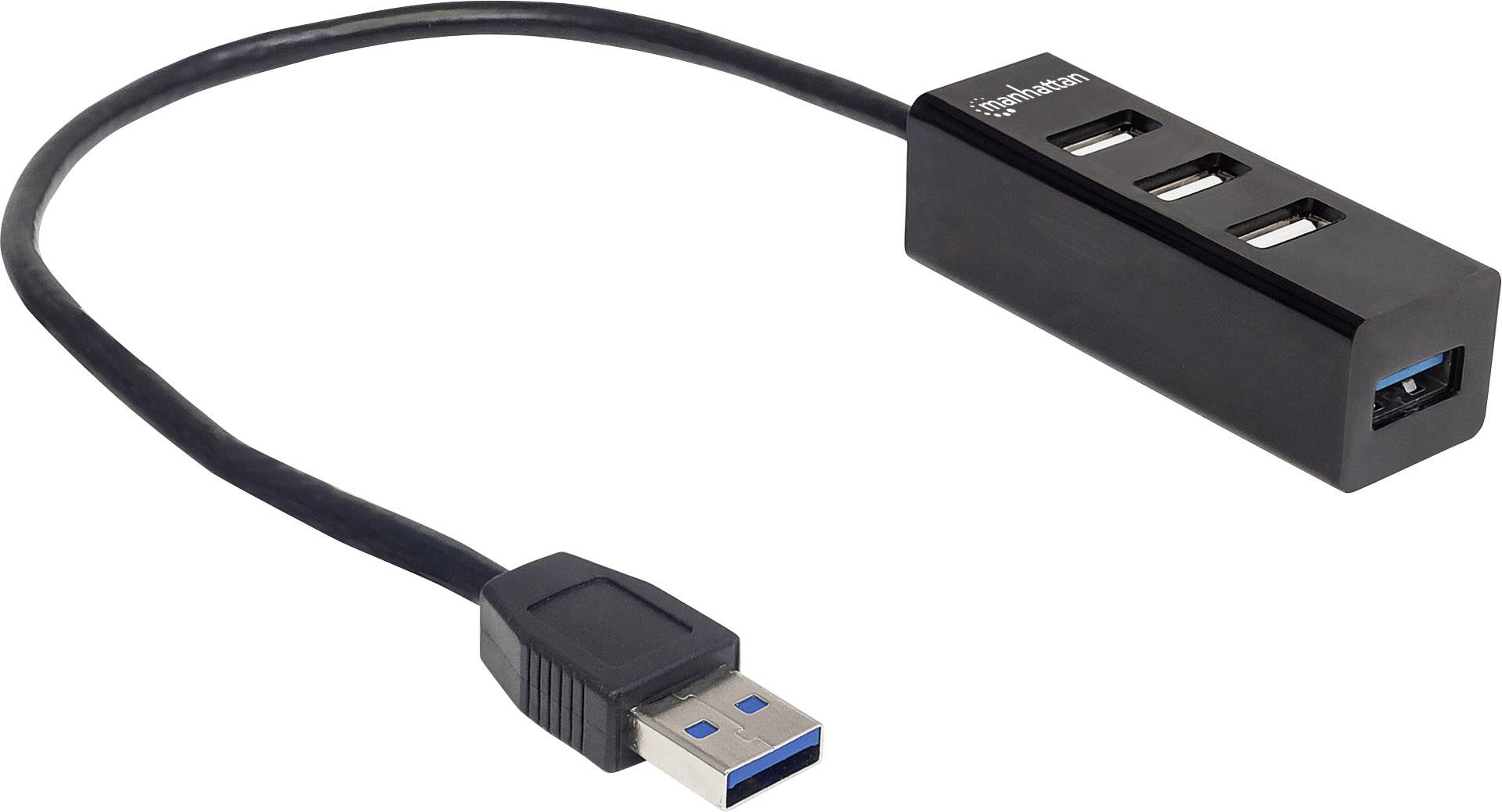 Manhattan 163828 4 Port USB 3.2 Gen 1-, USB 2.0-Kombi-Hub Schwarz
