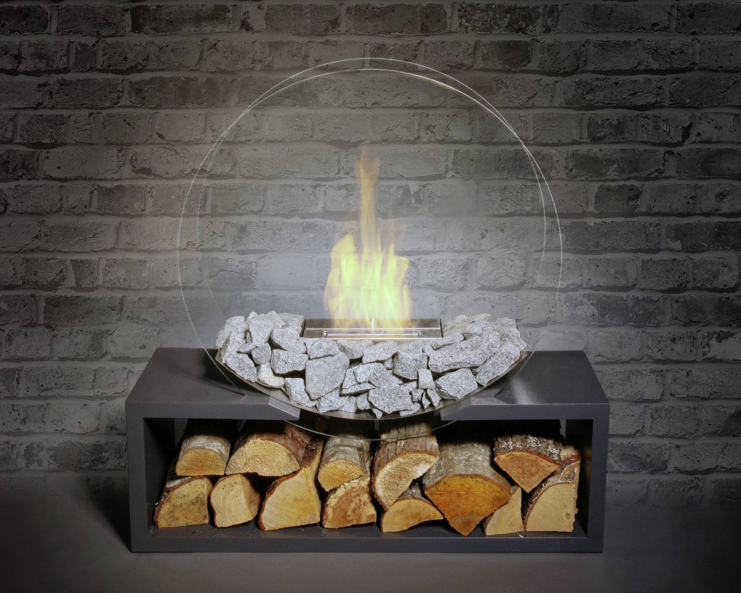 Mobiler Standkamin, platzsparend für die Wand oder Raummitte, geeignet für den Wohnbereich.