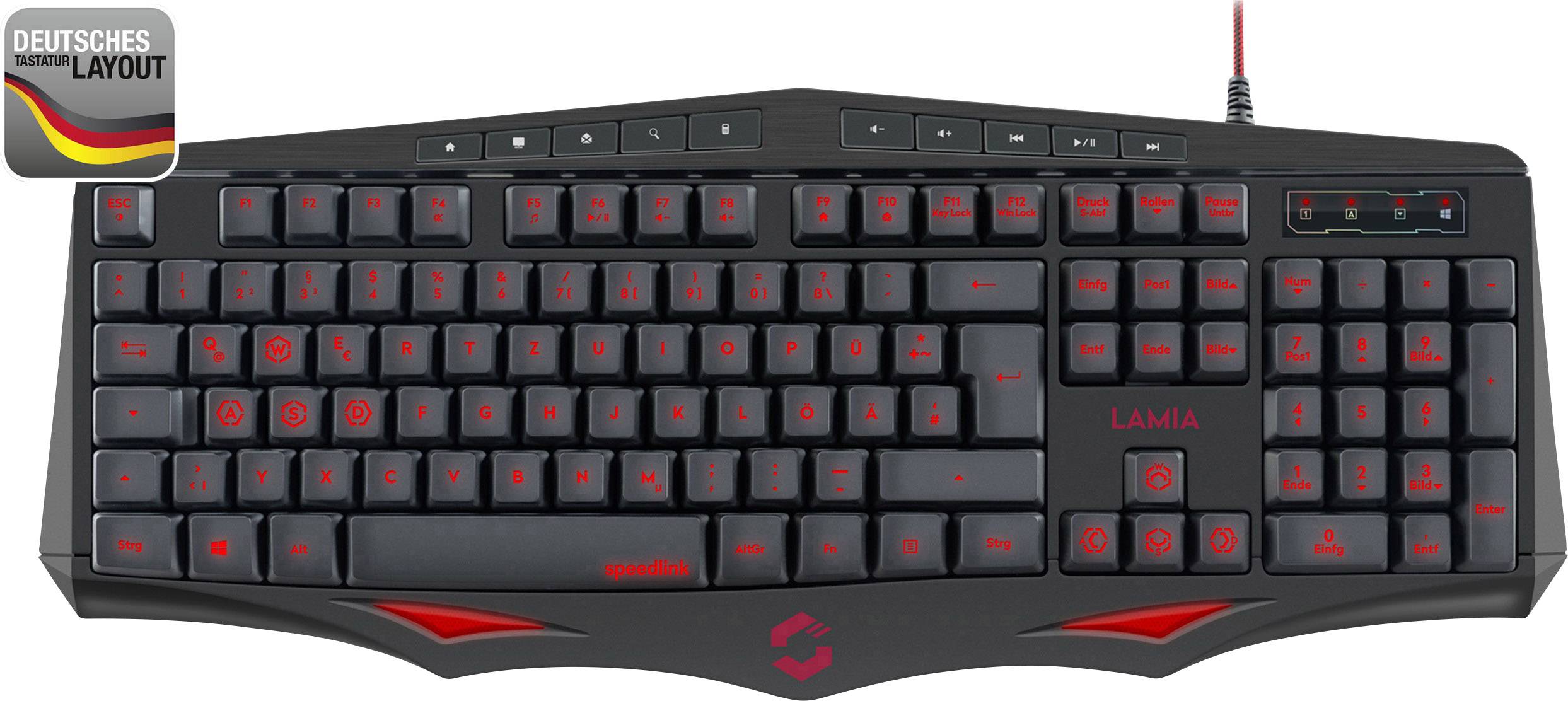 SpeedLink Lamia USB-Gaming-Tastatur Beleuchtet Deutsch, QWERTZ, Windows® Schwarz