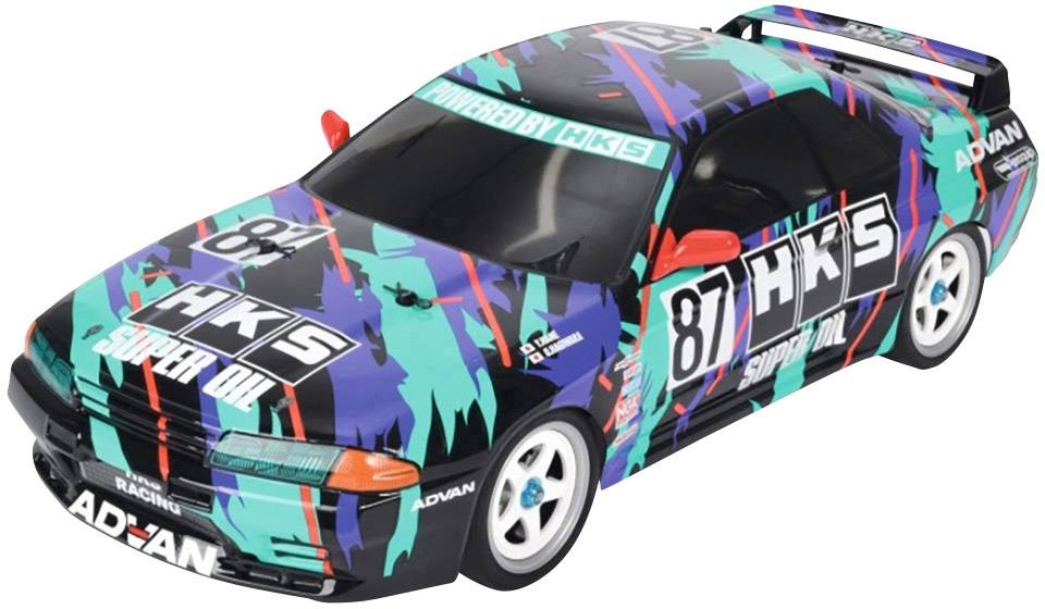 Der Skyline GT-R in der HKS Version ist eine Wiederauflage des TAMIYA Modells 58140. HKS ist eine japanische Tuningschmiede, die diesen Skyline 1993 für die Japanische Tourenwagenmeisterschaft gebaut hat. 2 Pole Positions, ein Sieg und am Ende der 2. und 3. Platz in der Meisterschaft krönte dieses besondere Modell. Das TAMIYA-Modell im Maßstab 1:10 auf dem TT-01E Chassis hat einen kräftigen Torque-Tuned Elektromotor und Allradantrieb. Diese Kombination sorgt für schnellen und unkomplizierten Fahrspaß. Die robuste und detailgetreue Polykarbonatkarosserie samt Dekorbogen sowie der elektronische Fahrregler TBLE-02S sind perfekt für RC-Hobbyisten geeignet.