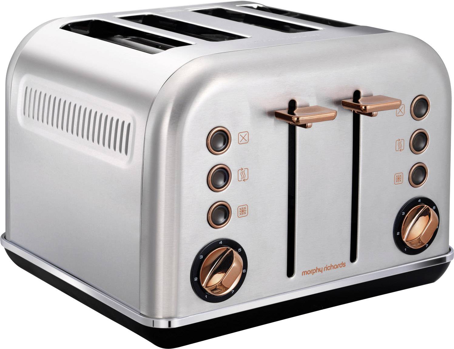 Der Accents 4-Schlitz Toaster von Morphy Richards bringt durch sein farbiges, lackiertes Edelstahlgehäuse frisches Design in jede Küche. Der Toaster ist kinderleicht zu bedienen und verfügt über eine Auftaufunktion die das stundenlange Vortauen unnötig macht. Mit der Wiederaufwärmfunktion lassen sich kaltgewordene Snacks einfach wieder aufwärmen. Durch die variable Bräunungskontrolle mit 7 Stufen wird der Toast ganz nach Belieben perfekt gebräunt.