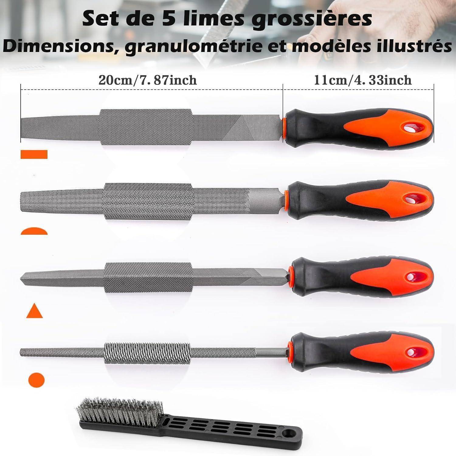Das Set enthält 4 Grobfeilen in 315 mm und 12 Nadelfeilen in 145 mm inklusive Drahtbürste und Aufbewahrungsbox damit alles perfekt organisiert bleibt.