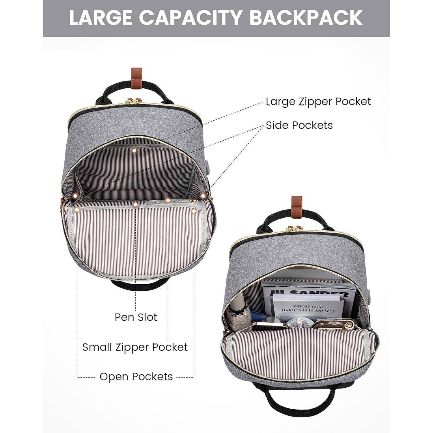 Der Rucksack ist mit einem wasserdichten Gewebe versehen, das Ihre Sachen vor Feuchtigkeit schützt. Zusätzlich verfügt er über ein separates Laptopfach für Geräte bis 15,6 Zoll und ein Tabletfach für iPads bis 12,9 Zoll oder kleinere Laptops. Der USB-Ladeanschluss ermöglicht es Ihnen, Ihr Mobiltelefon bequem unterwegs aufzuladen (Power Bank nicht inklusive).