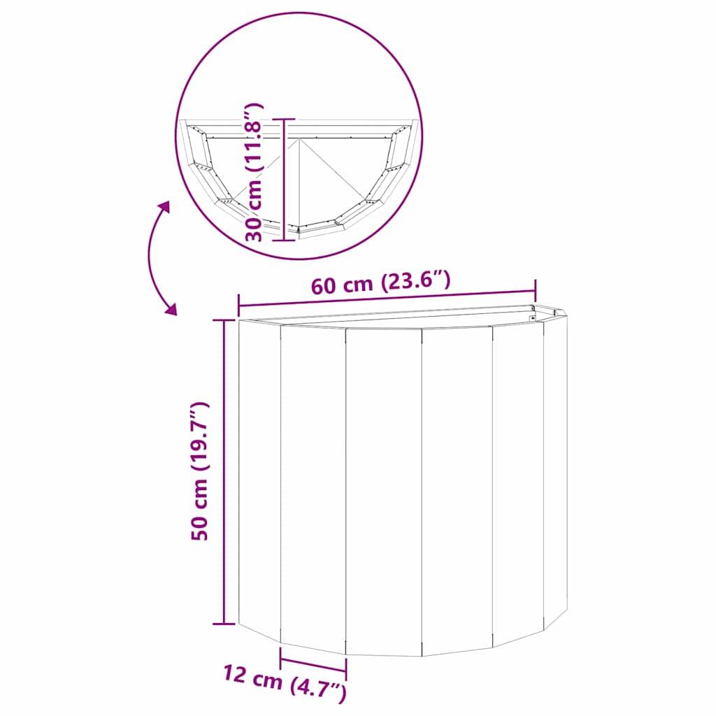 Dieser moderne halbrunde Gartenpflanzer wurde entwickelt, um deinen Außenbereich aufzuwerten. Sein stilvolles Design und die robuste Bauweise passen perfekt in jeden Garten oder jede Terrasse. Hergestellt aus hochwertigem Stahl, sorgt er dafür, dass deine Pflanzen über Jahre hinweg gut zur Geltung kommen. Der Pflanzer macht es einfach, kreative Landschaftsideen umzusetzen, weil seine Form sich gut an verschiedene Pflanzen anpassen lässt.