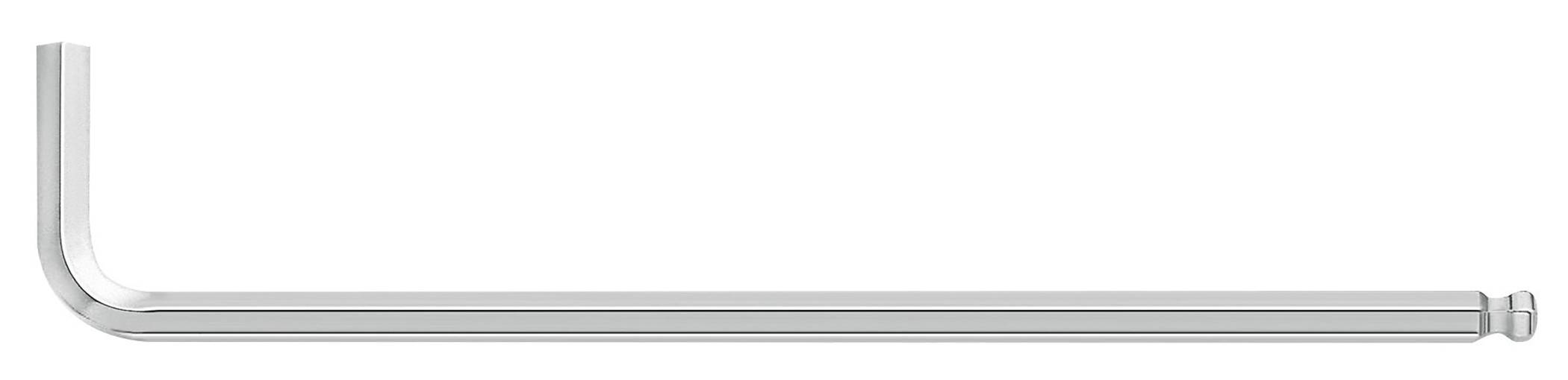 Winkelschraubendreher (Sechskant), lang, Kugelkopf. Winkelschraubendreher für Innensechskantschrauben, lange Form. Durchgehend gehärtet. Klare, dauerhafte Kennzeichnung. Vollgalvanische Behandlung der Oberfläche (vernickelt und verchromt) für lang anhaltenden Korrosionsschutz. Spezielle Chrom Vanadium-Legierung zur Übertragung hoher Drehmomentwerte. Mit Kugelkopf am langen Ende, ideal für schwer zugängliche Schrauben, da schwenkbar bis 25°.