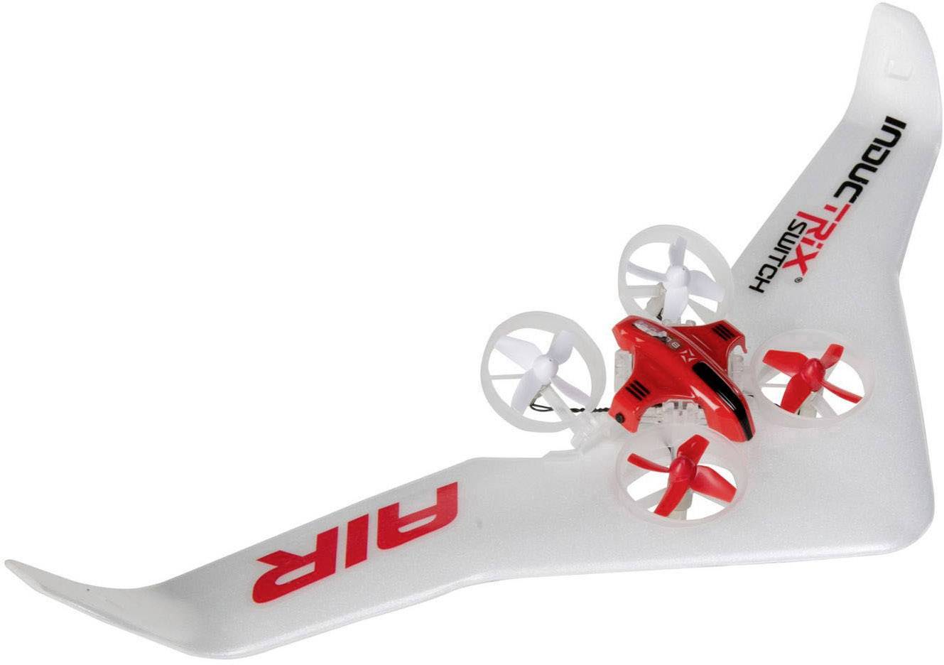Der Inductrix Switch Air eignet sich auch im Wing-Mode hervorragend zum Fliegen in geschlossenen Räumen. Du benötigst keine Start- oder Landebahn. Dank der VTOL-Funktionen (Vertical Takeoff and Landing) hebst du einfach im Schwebeflug ab, drückst die Knüppel nach vorne und beginnst zu fliegen. Zum landen, reduziere die Fluggeschwindigkeit, wie du es mit einer Drohne tun würdest. Der Inductrix Switch Air kann auch bei Windstille im Freien geflogen werden.