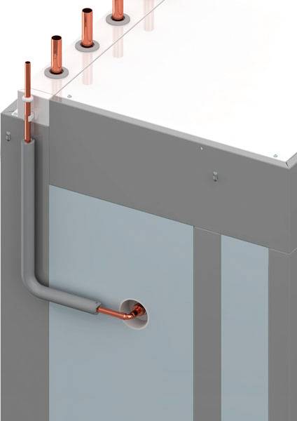 Anschlussset für eine Zirkulationspumpe an die Integralsysteme 304/404/504, bestehend aus einer Rohrbogenbaugruppe mit Dichtung und Isolierschlauch. Die Rohrbaugruppe wird innerhalb der Seitenwand intalliert. Der Anschluss befindet sich auf der Oberseite des Gerätes hinten links.